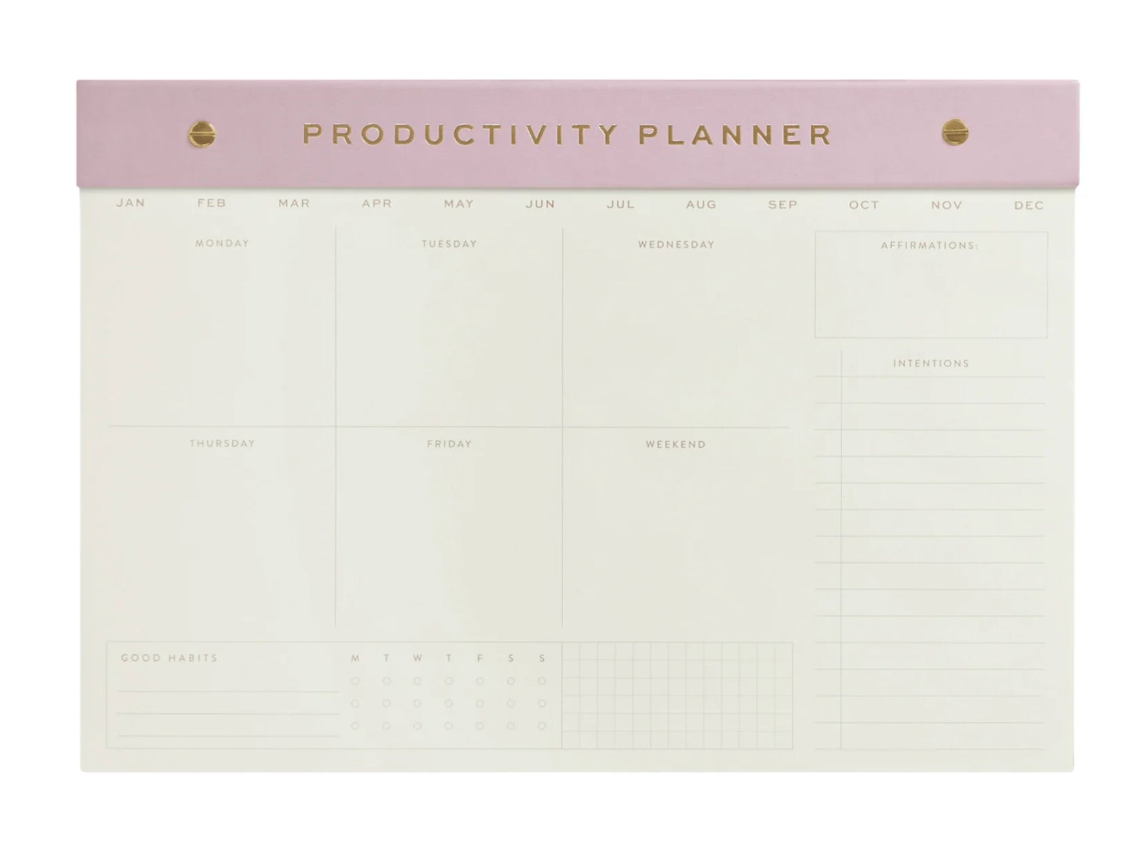 Made for center-stage of your desk, use it to keep tabs on your top priorities as well as recording daily affirmations and intentions. Want to start a healthy habit? Tackle those real good routines with the added habit tracker. You’ve got 60 leather-bound sheets of organizing zen to fill.